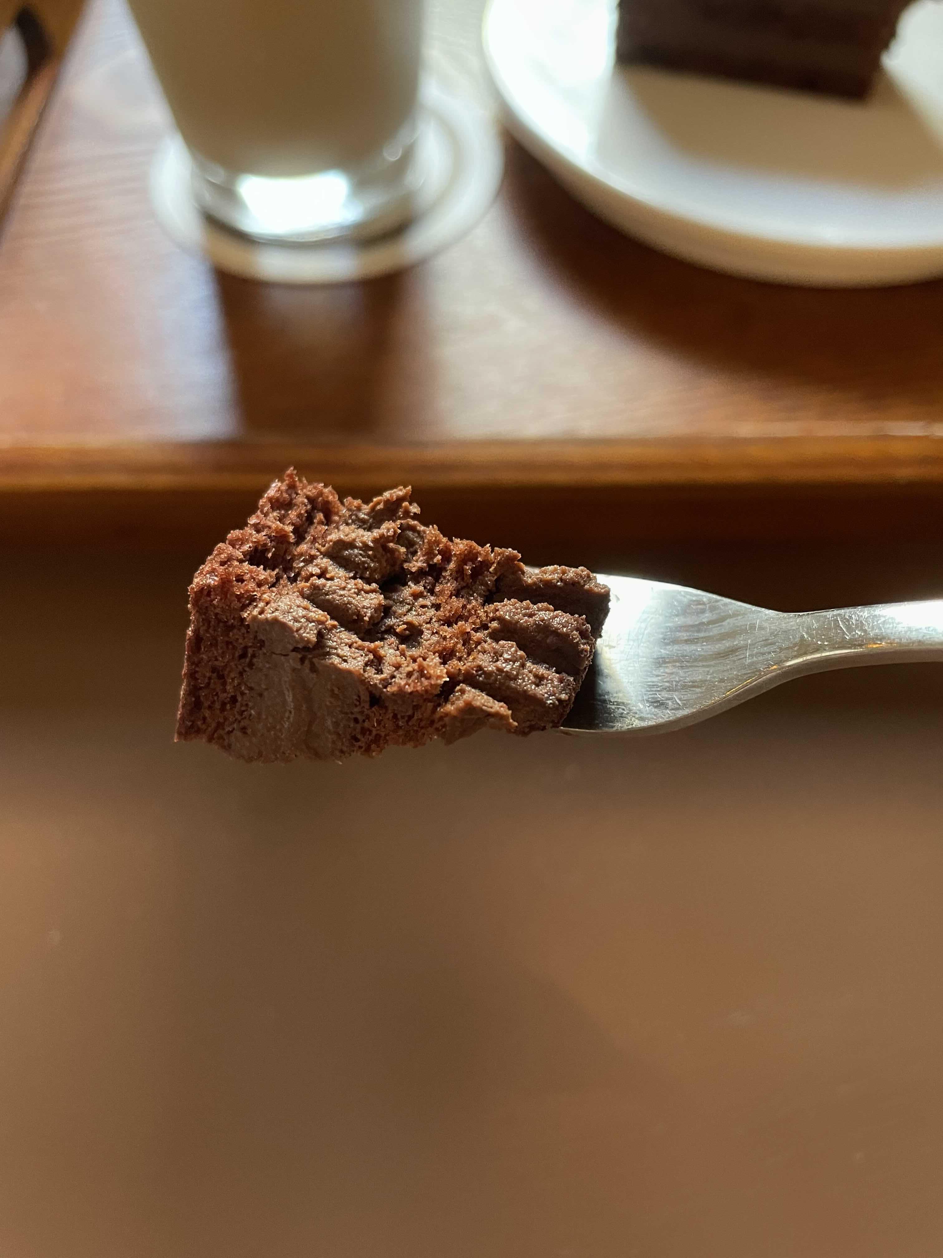 비쥬얼만 봐도 느껴지겠지만 리얼초코 케이크는 아주 진득하게 초코맛이 난다. 생초콜릿인가..? 확실히 모르겠지만. 그 케이크의 빵부분이라고 해야하나? 그런부분이 거의 느껴지지 않을 정도로 텁텁한 맛없이 초콜릿의 진득한 맛이 가득하다. 둘이서 하나를 나눠먹으니 딱 적당했고 아주 완벽한 디저트였다. 강력추천