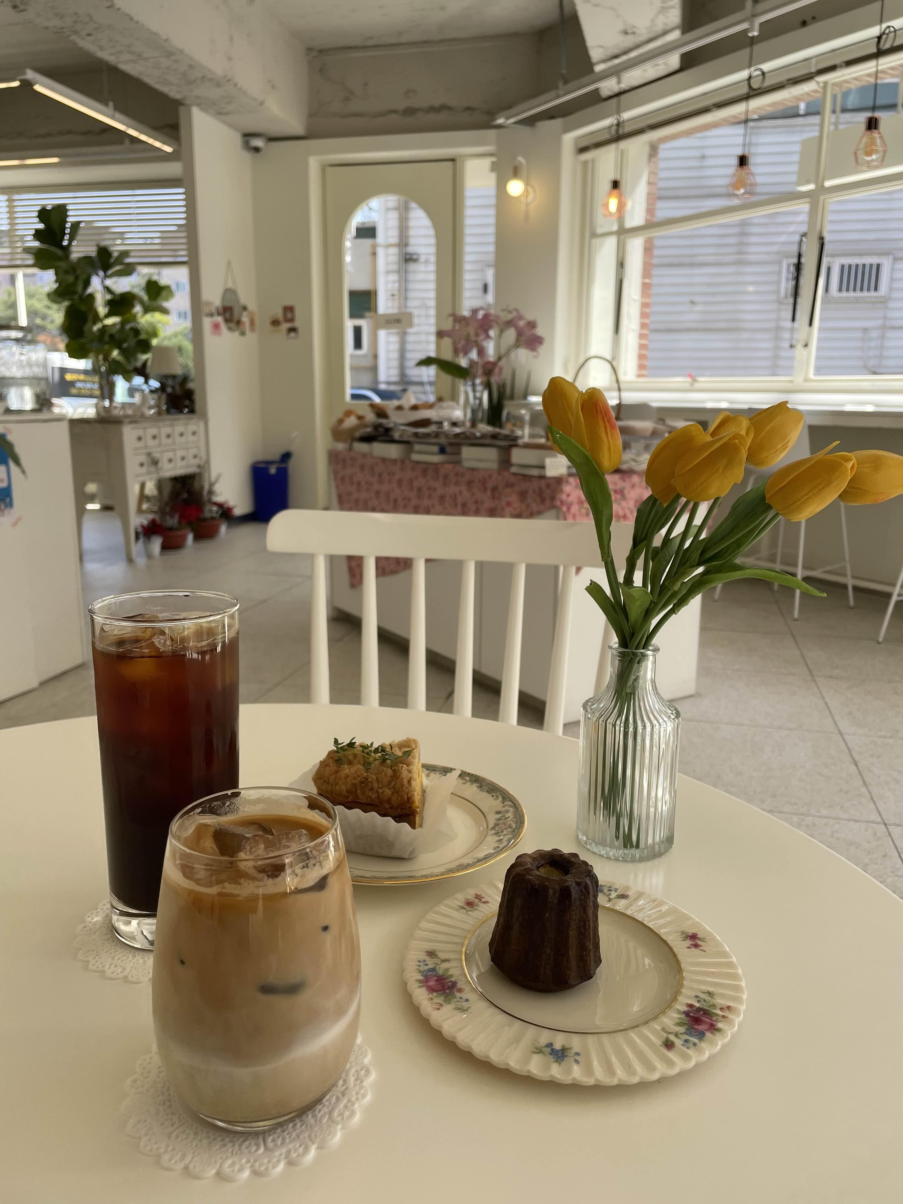 나의 특별한 디저트는 플레이트가 너무 예뻐요. 예쁜 플레이트 덕분에 기분이 확 좋아지더라구요. 까눌레는 겉바속촉(?)으로 괜찮았고, 단호박치즈케이크는 처음 먹어보는 듯한 색다른 맛이 정말 매력적이었답니다. 너무 단호박 맛도 아닌 너무 치즈케이크도 아닌 그 배합이 정말 환상적이었어요.