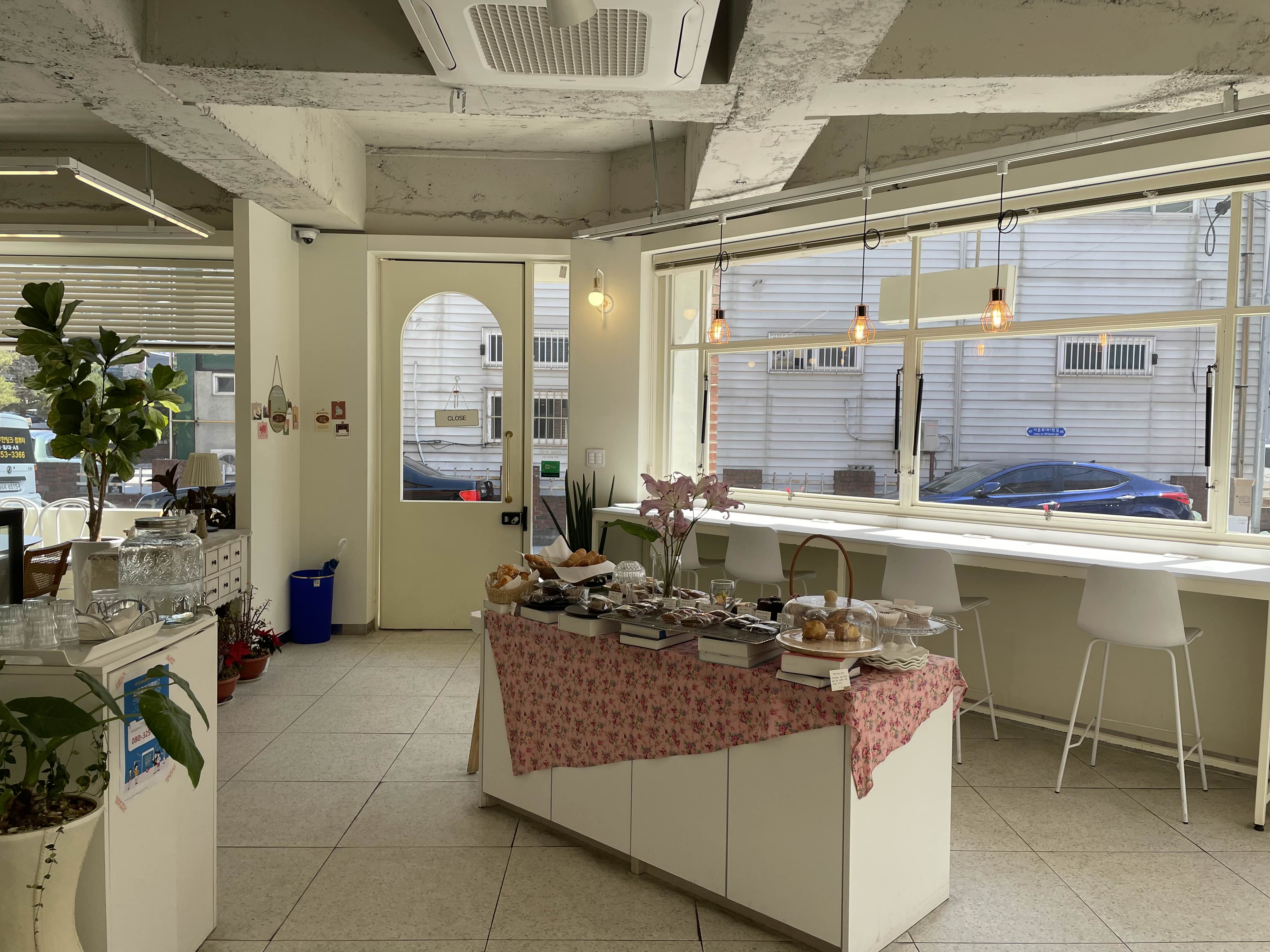 카페 테이블은 이쪽과 반대쪽까지 포함해서 10좌석 넘게 있는 것 같더라구요. 요즘 카페들이 좁은 공간을 활용하고자 테이블간에 많이 붙어있는 경우가 많은데 여기는 테이블 간의 간격이 넓찍해서 너무 좋았습니다.