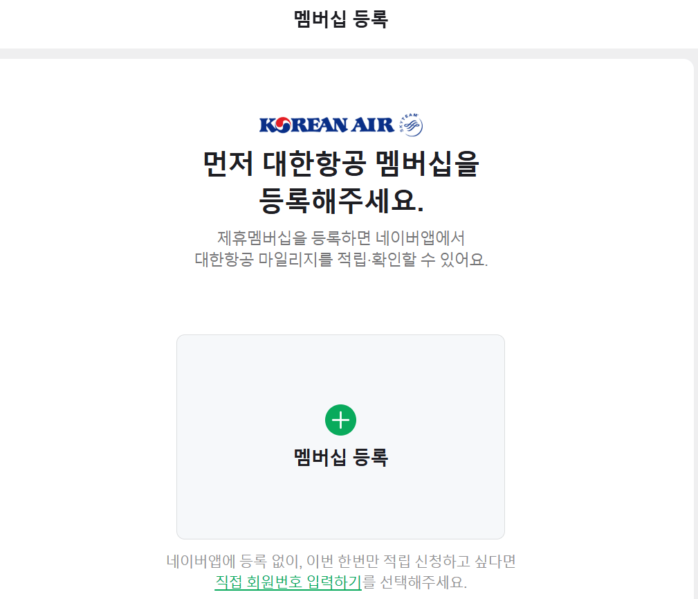 물론, 네이버페이 대한항공마일리지로 바꾸기 위해서는 먼저 대한항공 회원으로 등록해야 합니다.