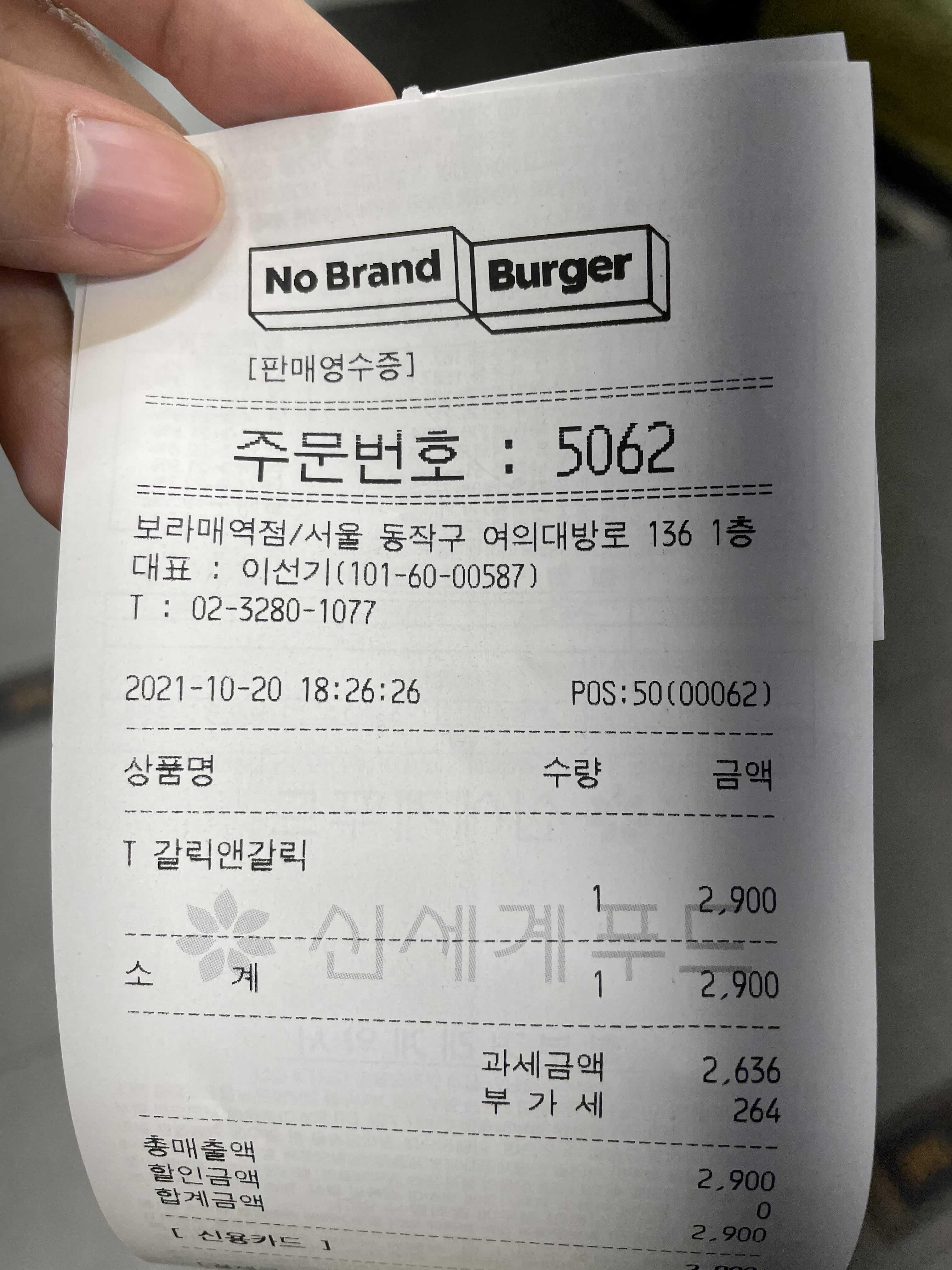 아무래도.. 다이어터인지라 양심의 가책을 덜기위해 세트가 아닌 단품으로 주문! 노브랜드버거 갈릭앤갈릭 가격은 2,900원입니다. 아주 가성비가 내려오는 가격이라 생각했지요(이때까지만해도..)