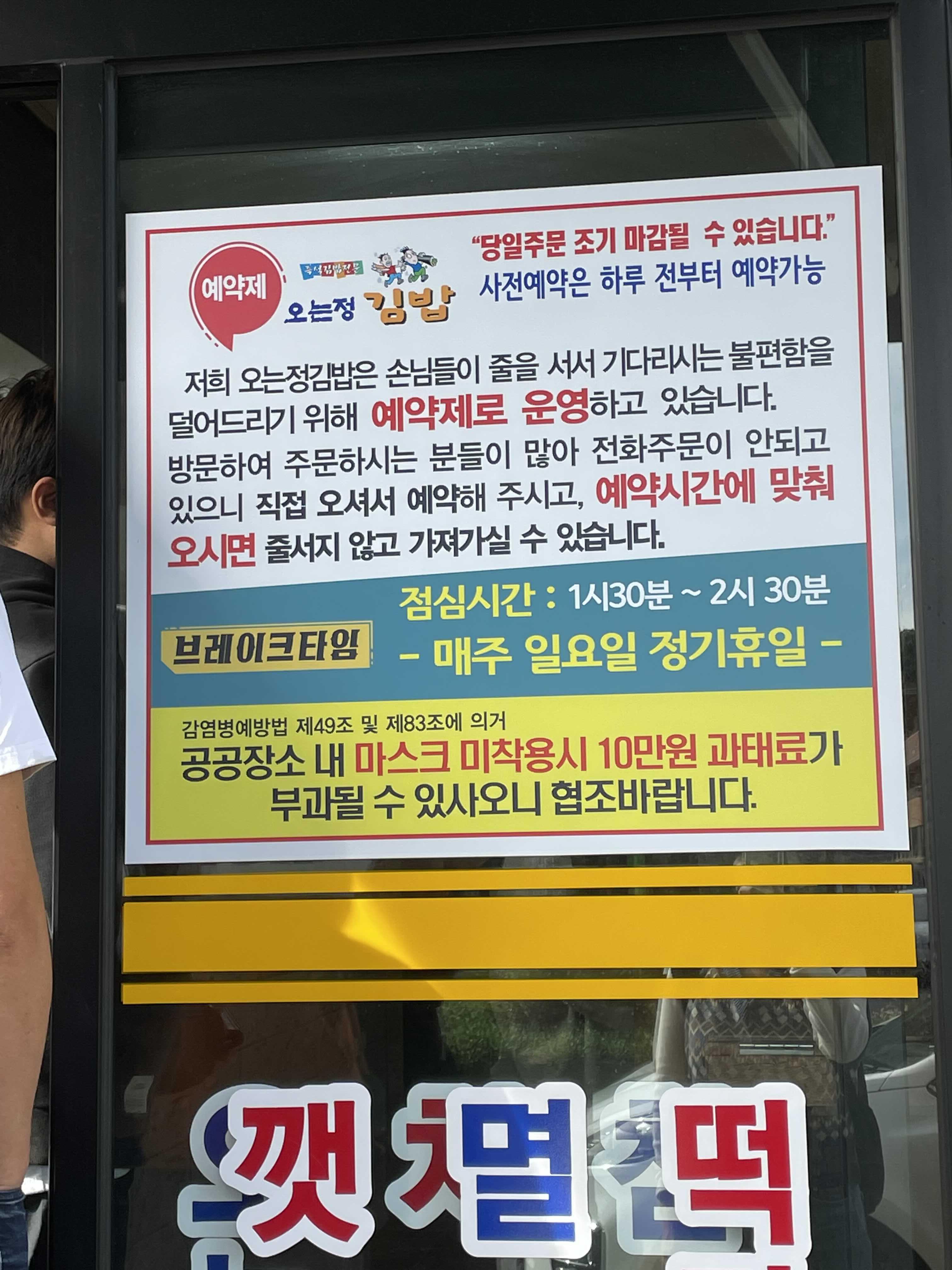 1. 당일(당일 예약시 오전 방문 필수) 혹은 전날 오는정 김밥 방문