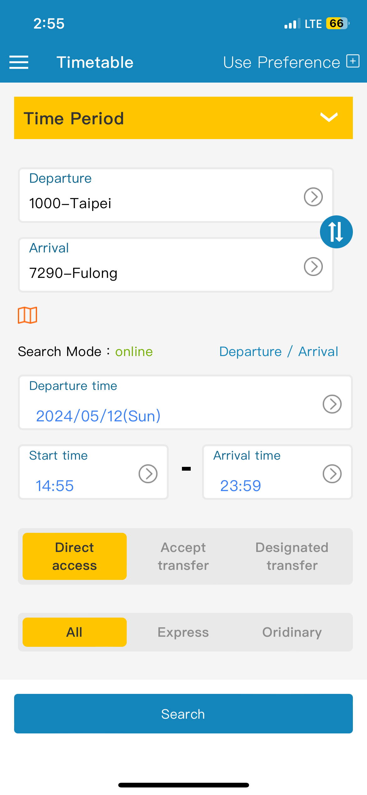 출발지 타이페이 taipei 검색 / 도착지 푸롱 fulong 검색