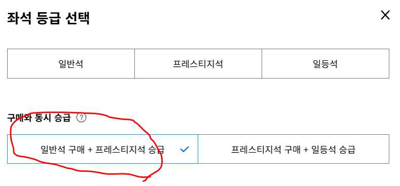 - 모든 항공권이 좌석승급이 되는 것이 아니고 구매와 동시 승급 티켓을 구매해야 합니다.