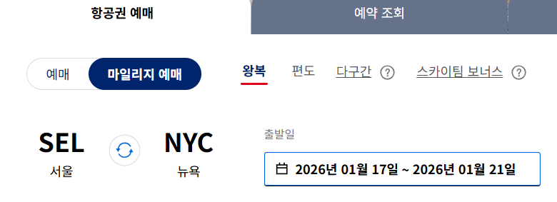 예를 들어 인천에서 일본은 15,000 마일리지가 필요하지만, 인천에서 뉴욕까지는 35,000마일이 필요합니다.