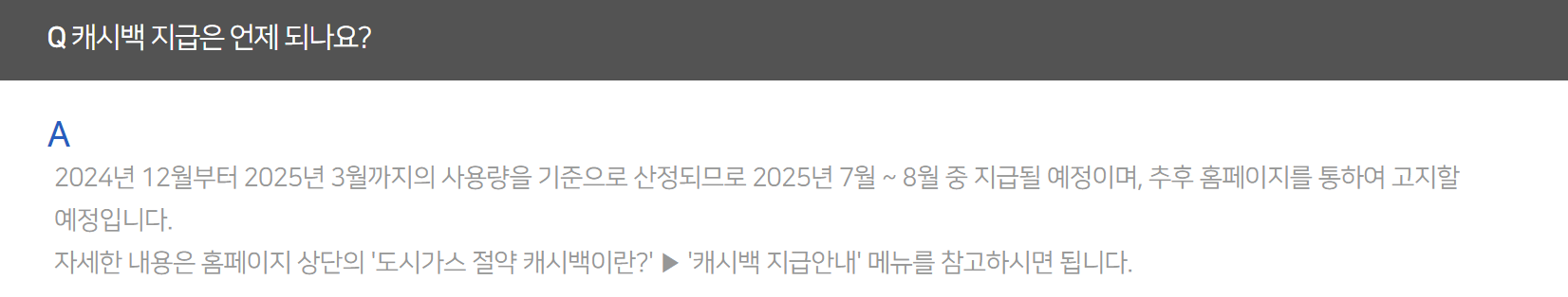 도시가스캐시백 지급일정은 25년 7~8월 예정되어 있습니다. 정말 생각지도 못한 난방비 절약 방법인데, 모두들 작년보다 난방비도 줄이고, 캐시백까지 받아보시길 바랄게요. 관련하여 문의사항 있으시면 댓글 남겨주세요.