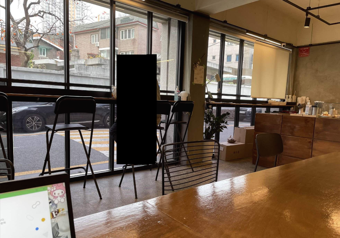 매장의 크기는 크지 않은 편입니다. 개인적으로 불편한 자리는 선호하지 않아서 넓찍한 책상을 사용했답니다. 노트북 사용하기에는 이 자리가 편하더라구요. 위의 사진처럼 테이블이 작은 곳도 있으니까 참고해주세요.