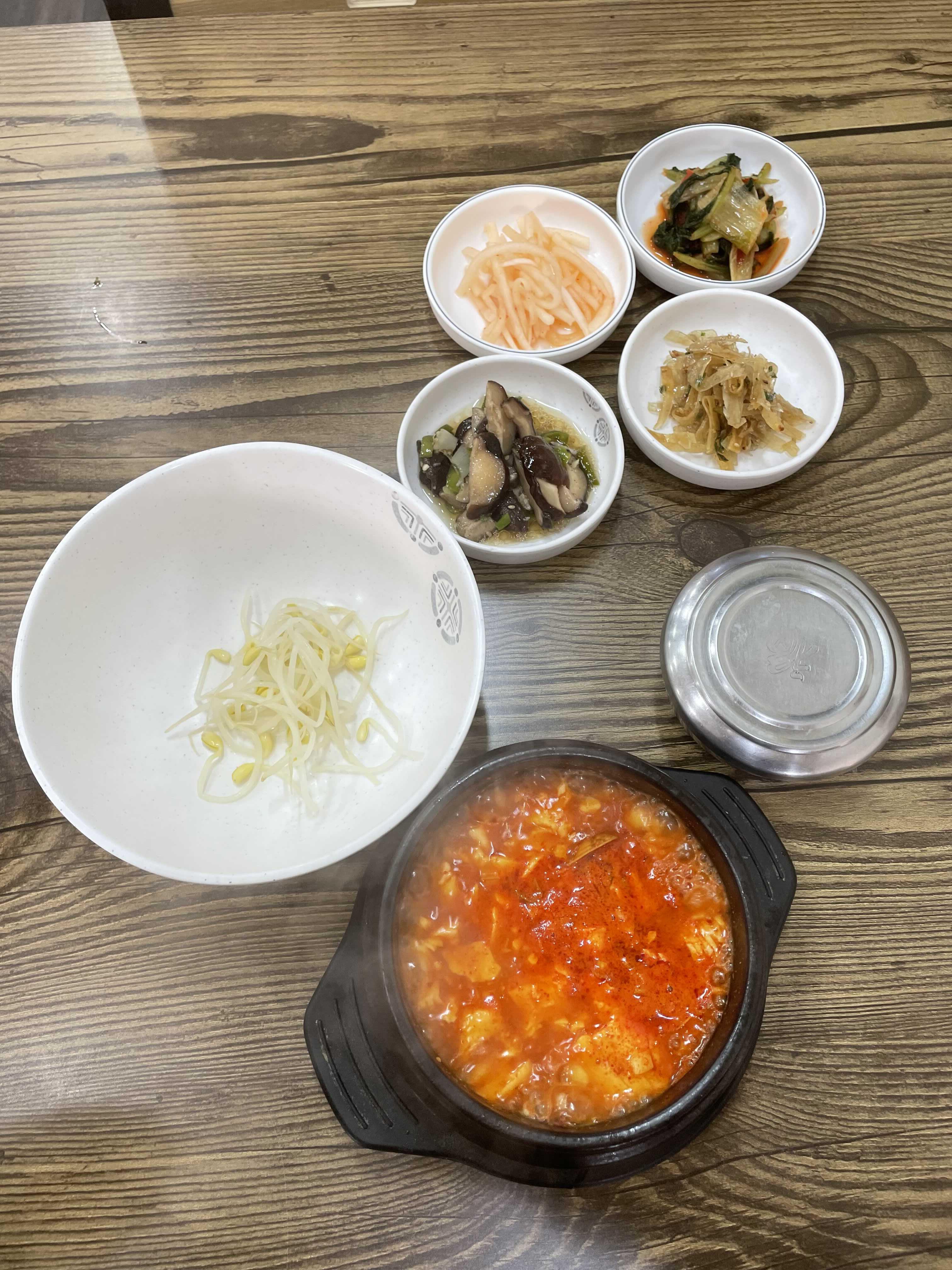 보통은 계란 넣어서 나오지 않나? 여기는 옆에 따로 날계란이 있다. 순두부에는 계란이 꼭 들어가야 한다고 생각하는 사람이라 식기전에 얼른 계란을 넣어준다.