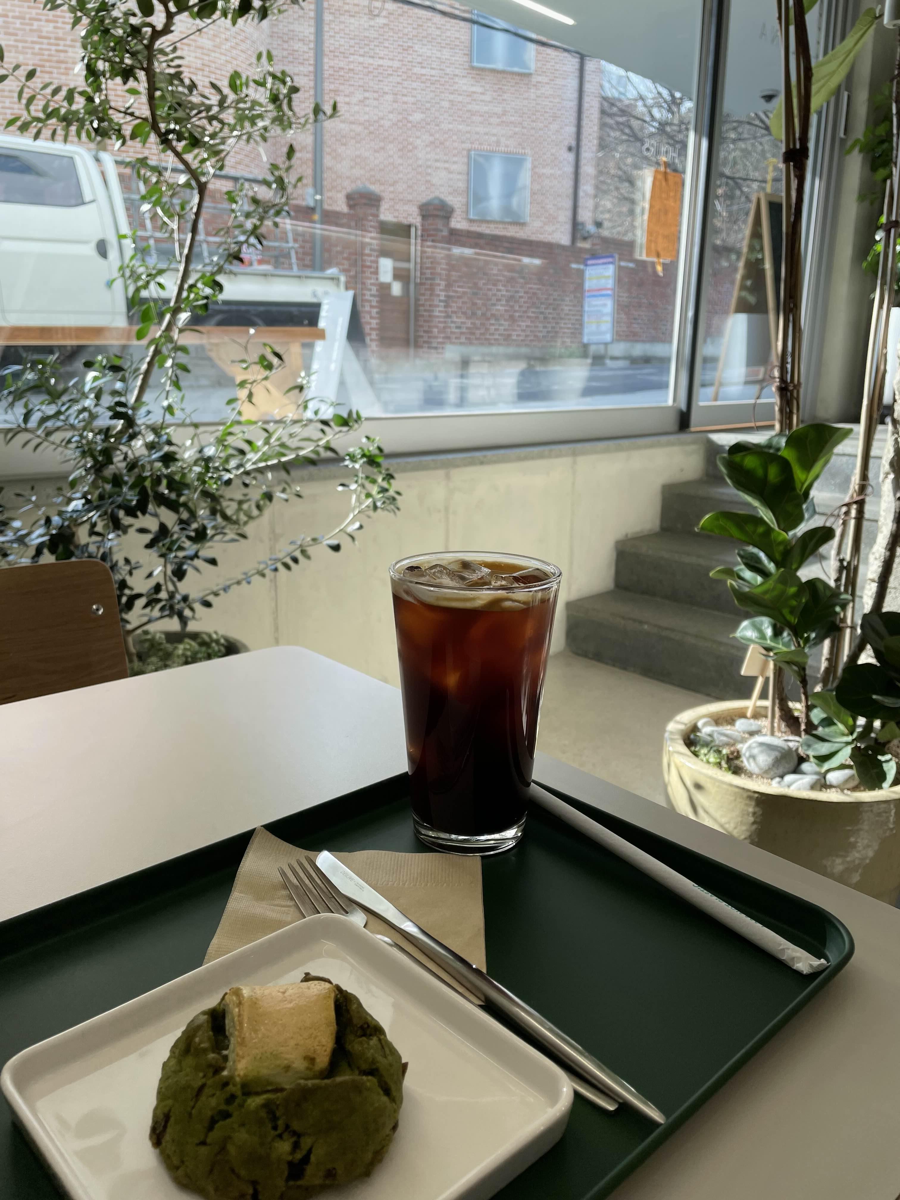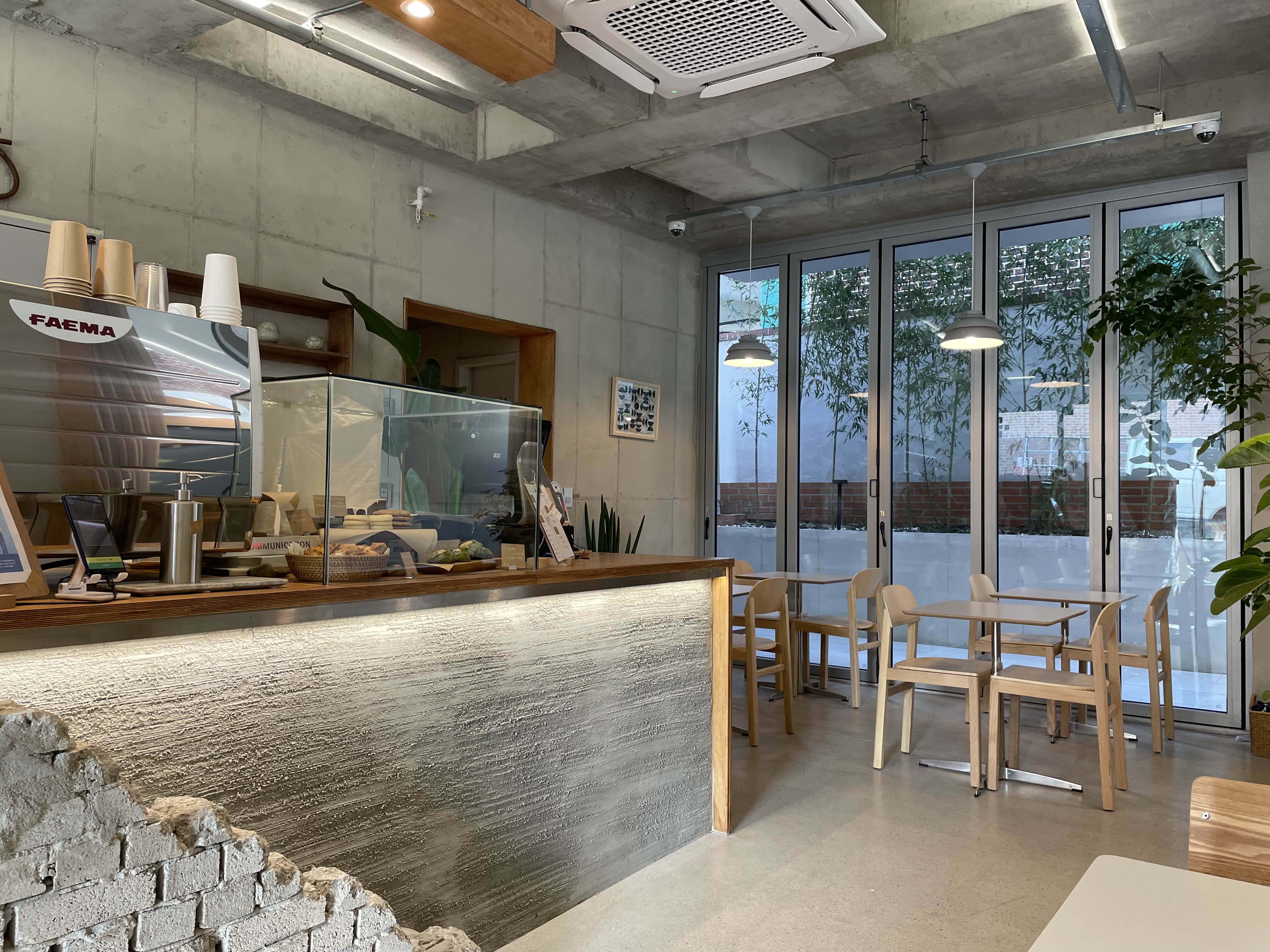 테이블이 약 6개+벽 보는 방향 테이블 하나 정도로 작은 규모이지만, 평일 낮시간대에 주로 방문했던 저는 한번도 자리가 없거나 했던 적은 없어요. 딱 점심시간 피크시간대에는 자리 없을 수도 있습니다. 아무래도 근처에 괜찮은 카페가 없다보니 주변 회사 직원분들이 다들 여기로 오시는 것 같더라구요.