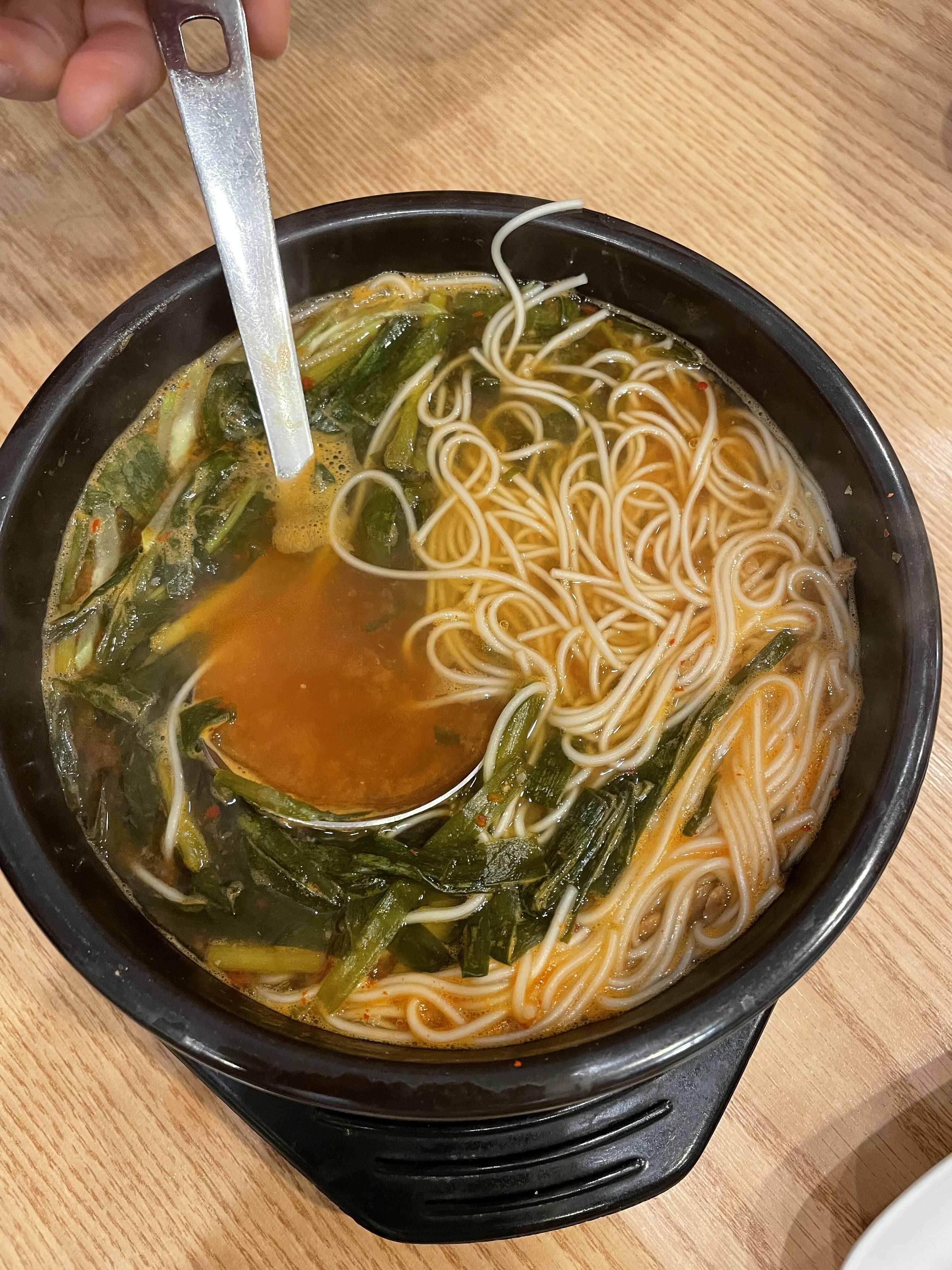 두번째는 조선국시입니다. 조선국시 또한 한번 먹고 나서 찍어서 사진이 조금 지저분하네요 ^^;;; 약간 밍밍하다고 느낄 수도 있는 맛인데요. 부추에 신맛이 된장베이스의 국에 어우러져서 묘한 맛이 나요.