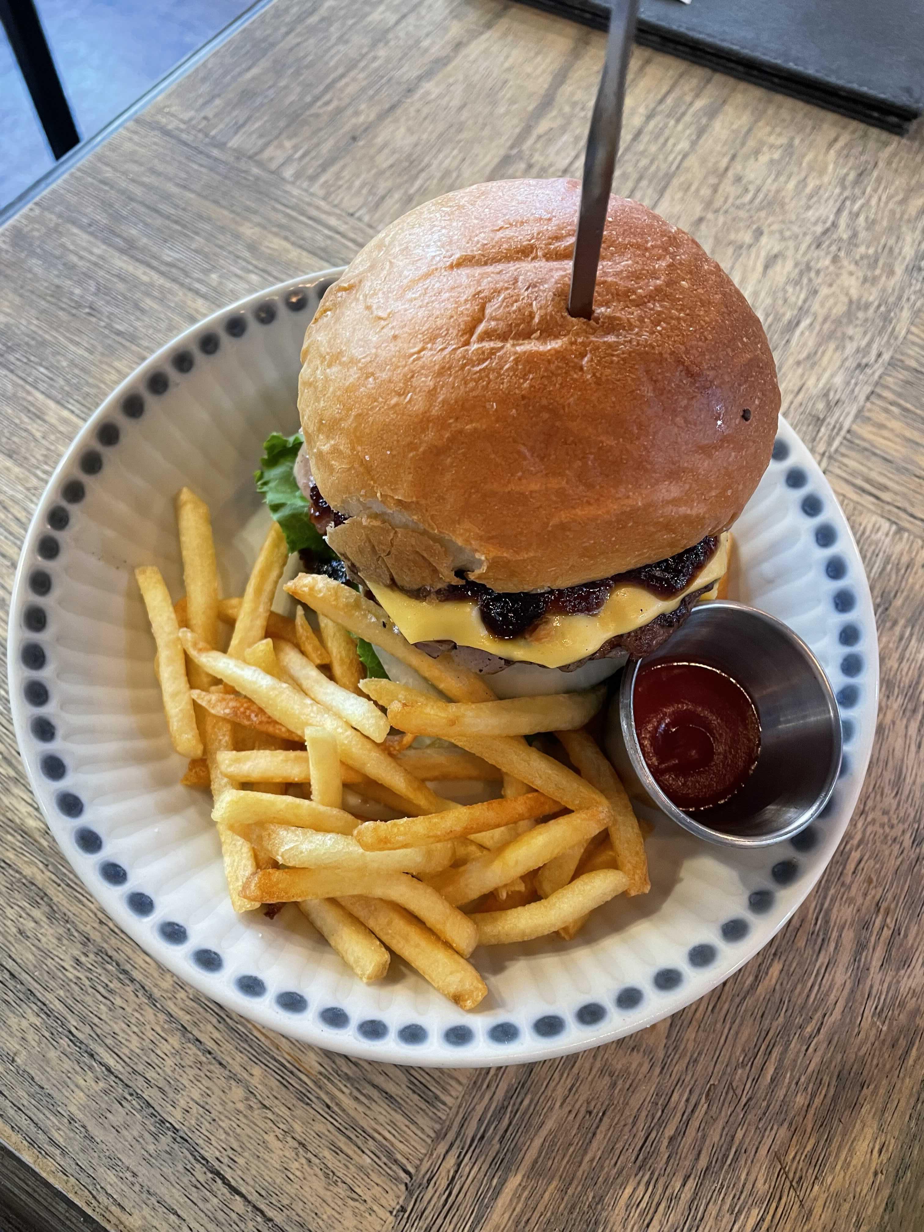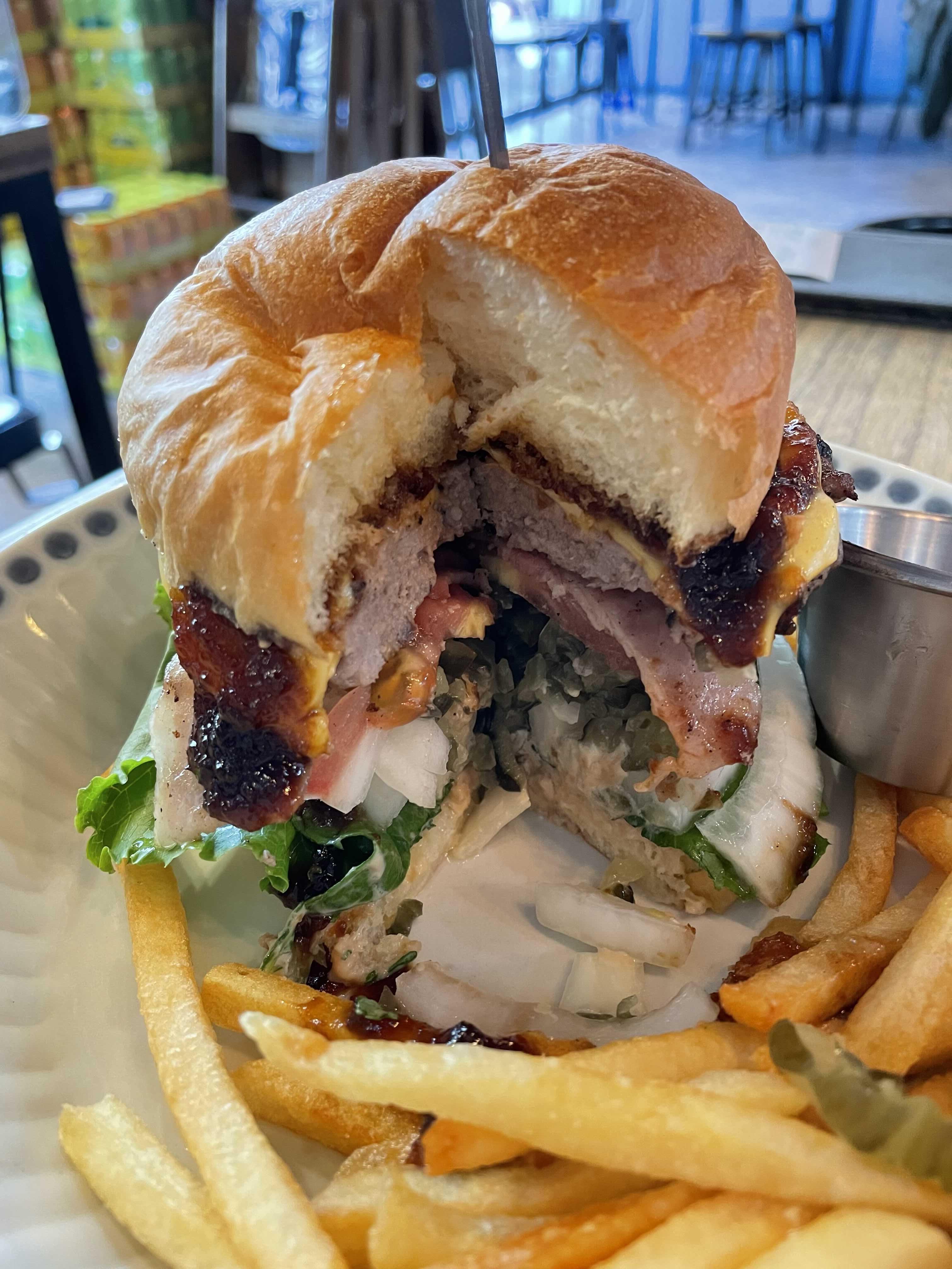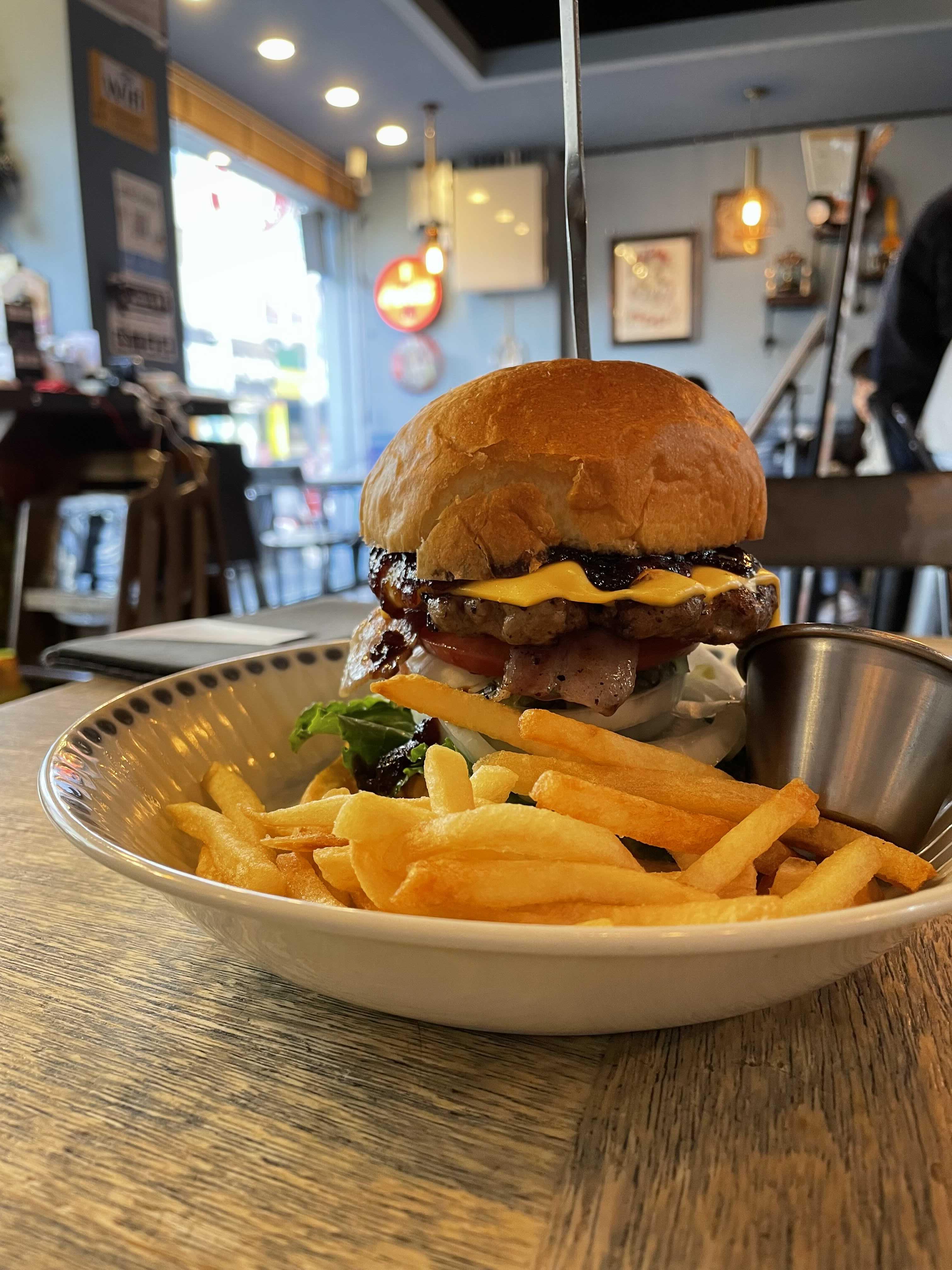 한입에는 절대로 넣어 먹을 수 없을 크기의 거대한 햄버거가 나왔습니다. 역시 수제버거는 과하다 싶을만큼 많은 토핑이 제맛이죠. 한입 잘라먹었는데, 평소 간을 심심하게 드시는 분이시라면 조금 간이 쎌 수도 있겠다 싶은 맛이었어요. 물론 저에게는 딱 맛있었습니다. 데리야끼 소스가 달달하면서 제입맛엔 너무 맛있었어요.