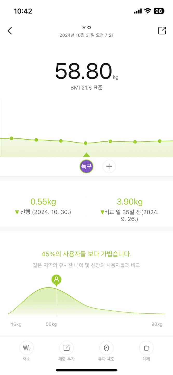 다이어트를 하면서 깨달은 건, 꾸준히 관리하지 않으면 언제든 다시 찔 수 있다는 거였어요. 최종적으로 감량 폭이 조금 줄어든 이유도, 일시적으로 관리에 소홀했기 때문이었거든요.