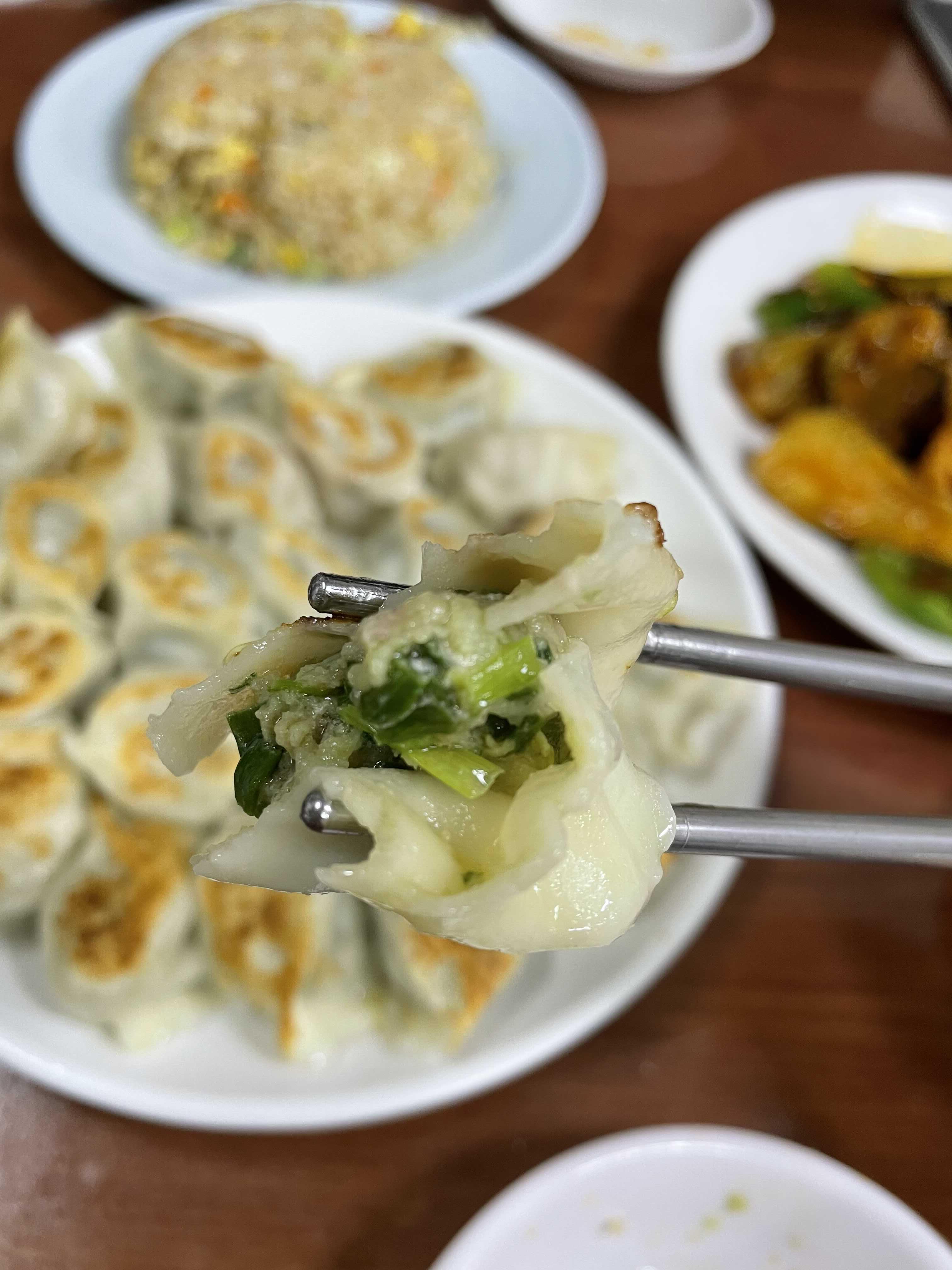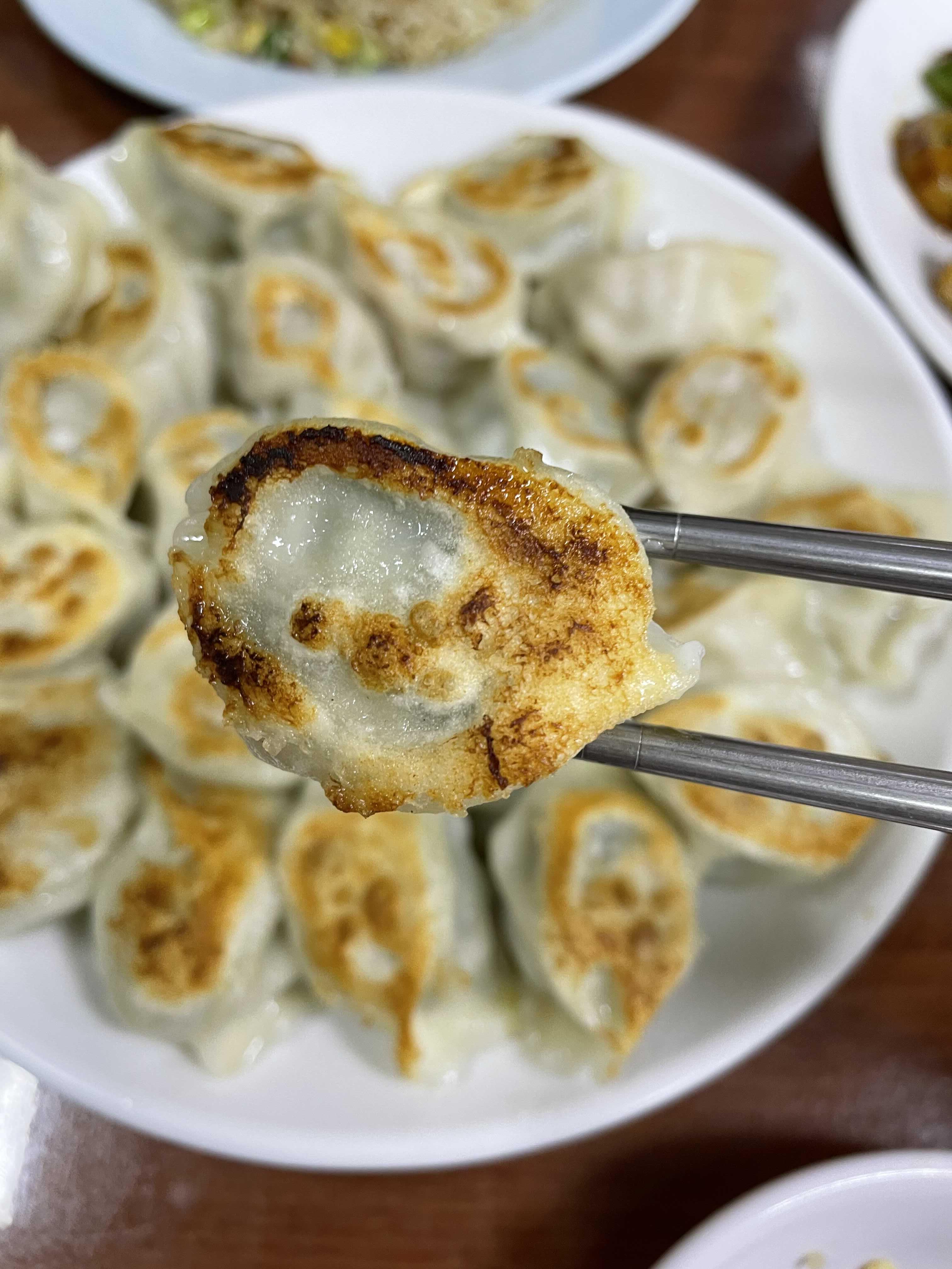 대표메뉴인 군만두. 군만두라고 다 같은 군만두가 아니다. 월래순교자관의 군만두는 한쪽면만 빠삭하게 굽고 뒷쪽은 물만두처럼 쪄서 아주 바삭함과 촉촉함을 동시에 느낄 수 있는게 정말 매력적이었다. 군만두를 좋아하는 나와 찐만두를 좋아하는 동생의 입맛을 모두 사로잡았다.