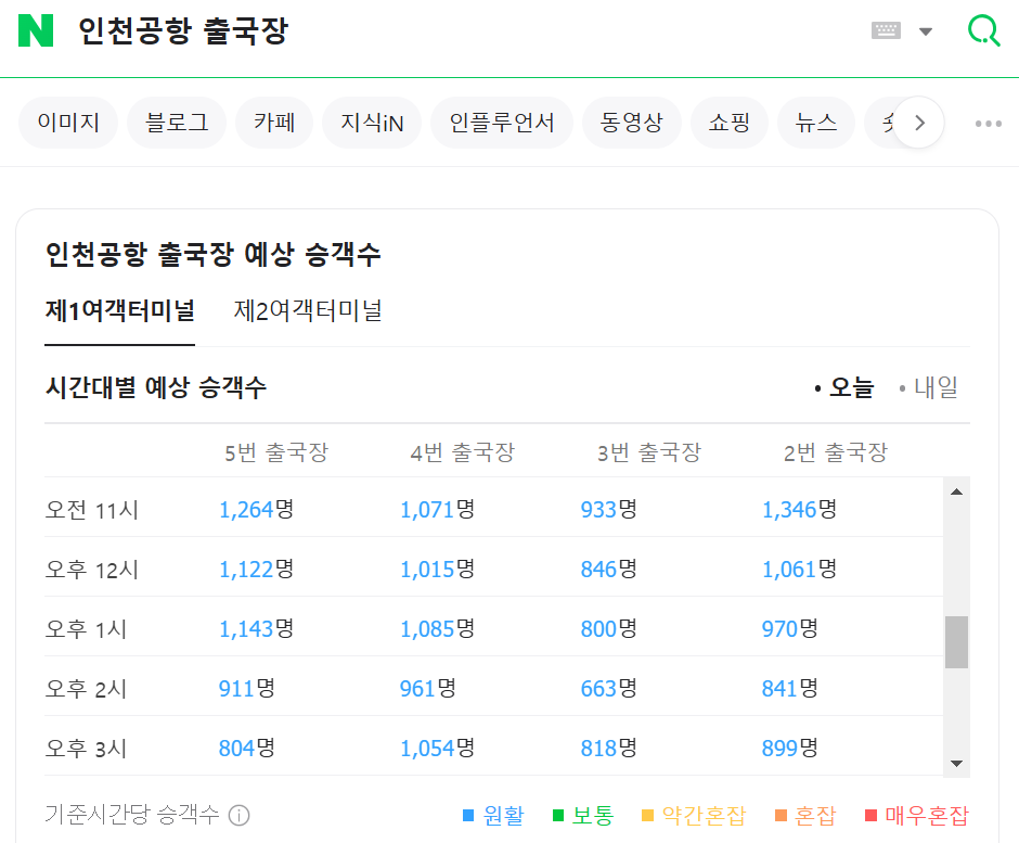 어플 다운받는 것이 귀찮다면, 그냥 검색창에 인천공항 출국장이라고 검색하셔도 쉽게 인천공항 혼잡도 확인이 가능합니다.