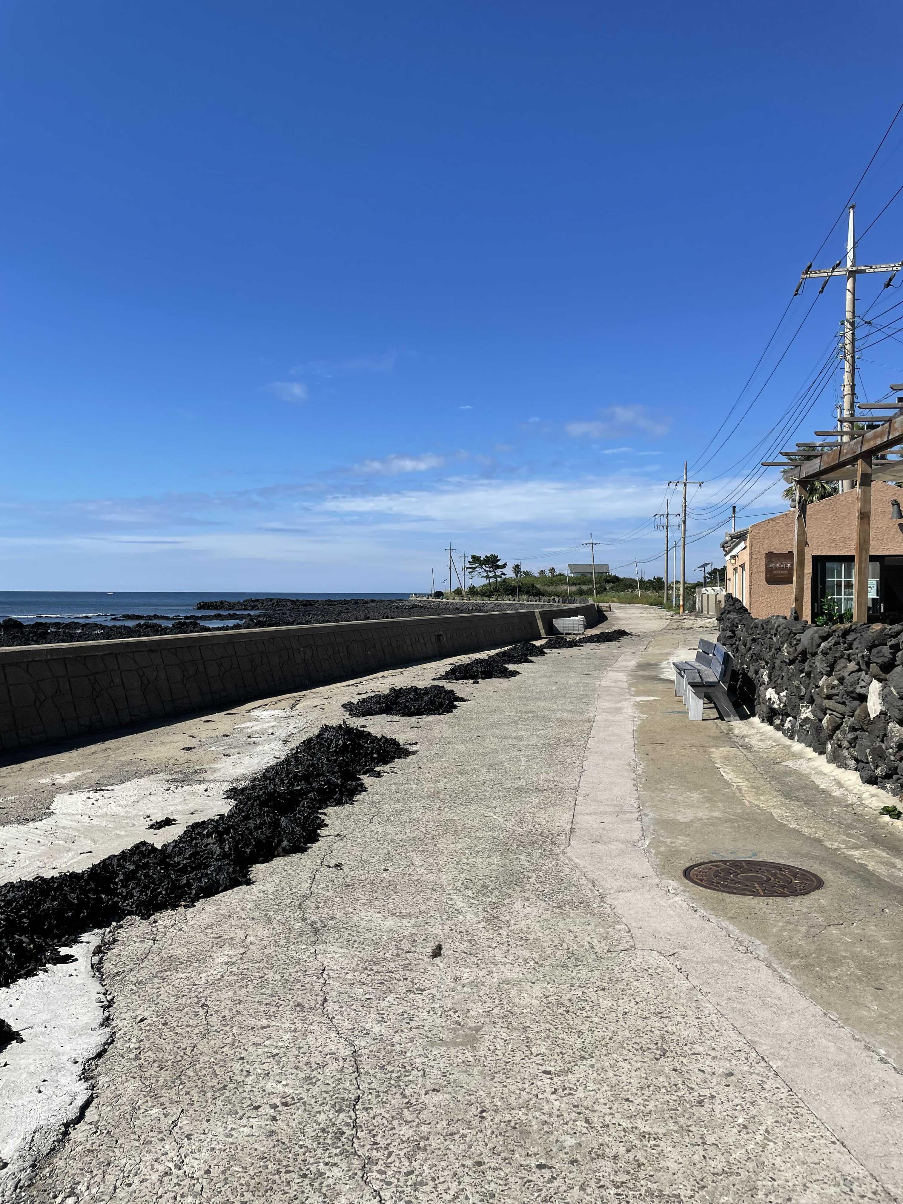왜냐하면 여기서부터 시작되는 해안도로가 정말 너무너무 예쁘고 딱 자전거 타기 너무 좋은 도로거든요. 그리고 걸어서 한바퀴를 돌기에는 너무 거리가 멀었기 때문에 중간에 돌아와야 하는 것도 아쉬웠어요. 자전거를 탔다면 한바퀴를 다 돌고도 남았을텐데 말이죠.