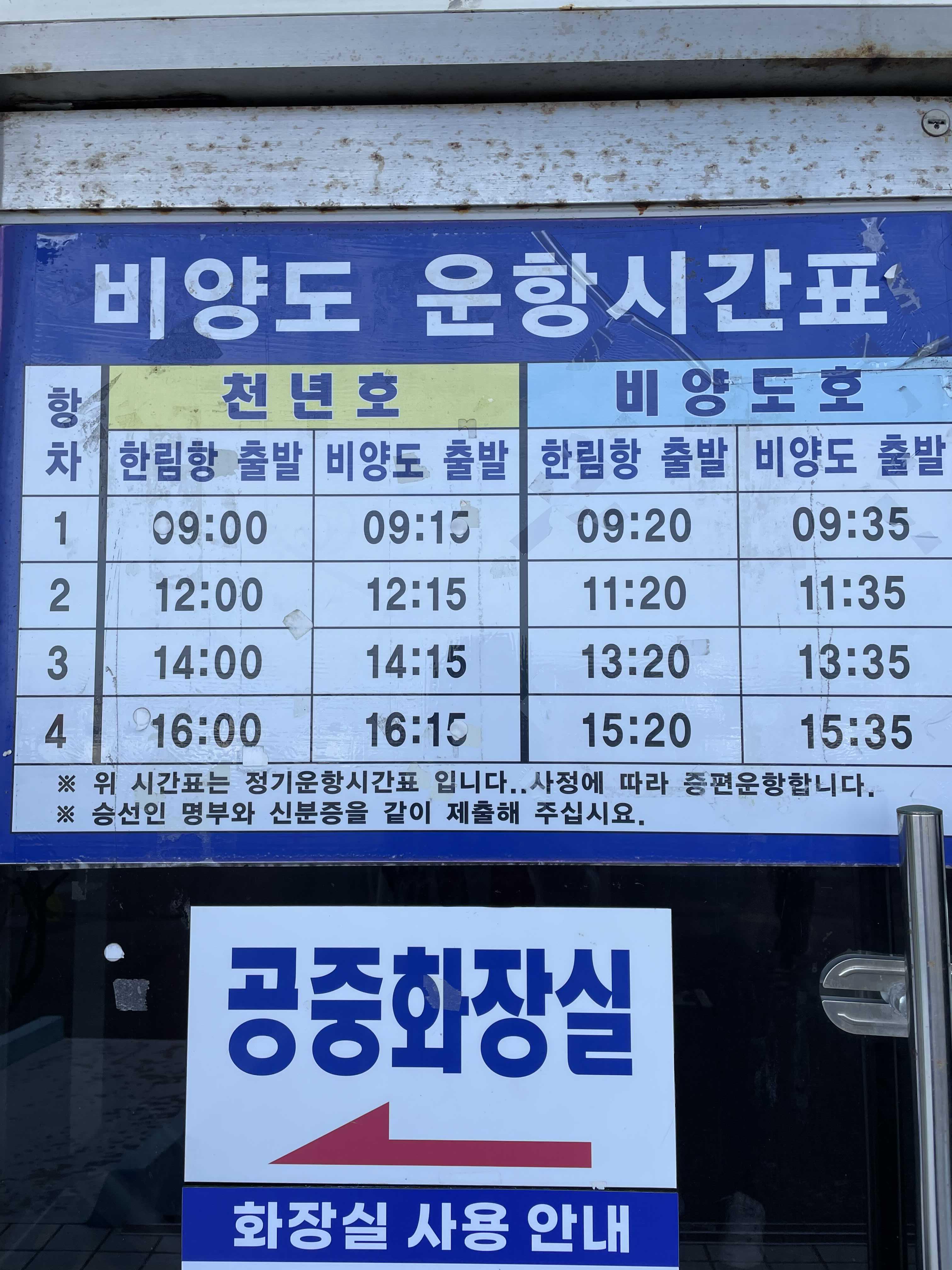 우선 저의 추천하는 시간대는 제가 이용한 9시 타임을 추천드리는데요. 오후시간대에는 사람들이 많이 방문하기도 하고 또 해가 뜨고나면 비양봉 오르기가 힘들기 때문입니다. 또 앞서 말씀드린대로 천년호 비양도호 교차이용이 불가하기 때문에 비양도호 9시 20분 시간대를 이용하게 되면 나오는 시간대가 11시35분이거나 13시35분이 되어야 하는데 시간이 너무 짧거나 너무 길어질 수 있기 때문에 비양도를 투어하기에 딱 적당한 세시간대 시간을 활용하기 위해서 9시 시간대를 추천드립니다.
