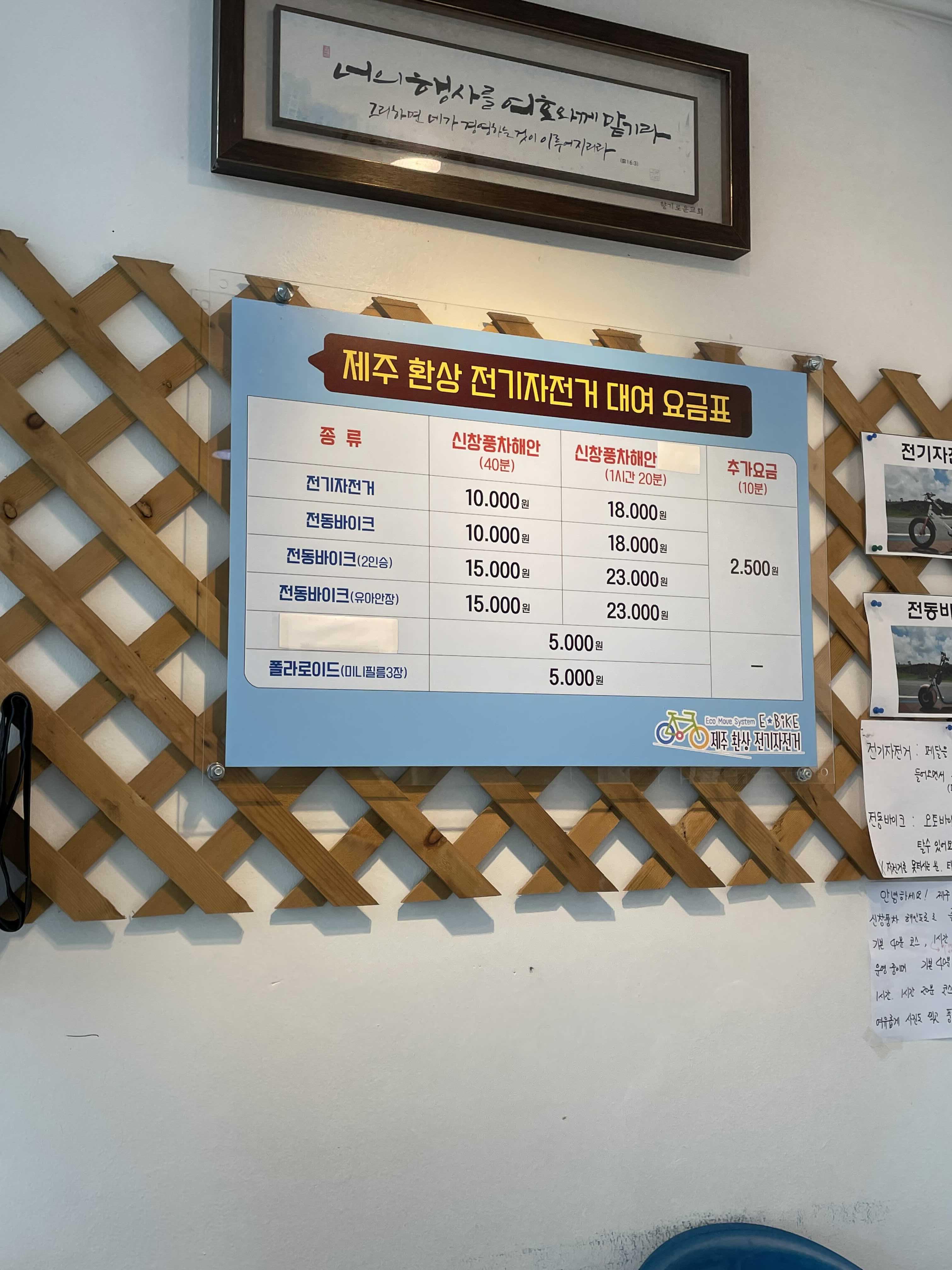 제주환상전기자전거의 요금은 40분에 10,000원으로 조금은 사악한 가격이지만, 한번 드라이브를 다녀오시면 전혀 아깝지 않은 가격이라는 생각이 드실거예요. 우선 전기자전거/전동바이크 중에 선택을 하셔야 하는데, 전동바이크의 경우에는 면허가 있어야 대여가 가능합니다. 저는 면허는 있지만 장롱면허이기 때문에 전기자전거를 선택하였어요.
