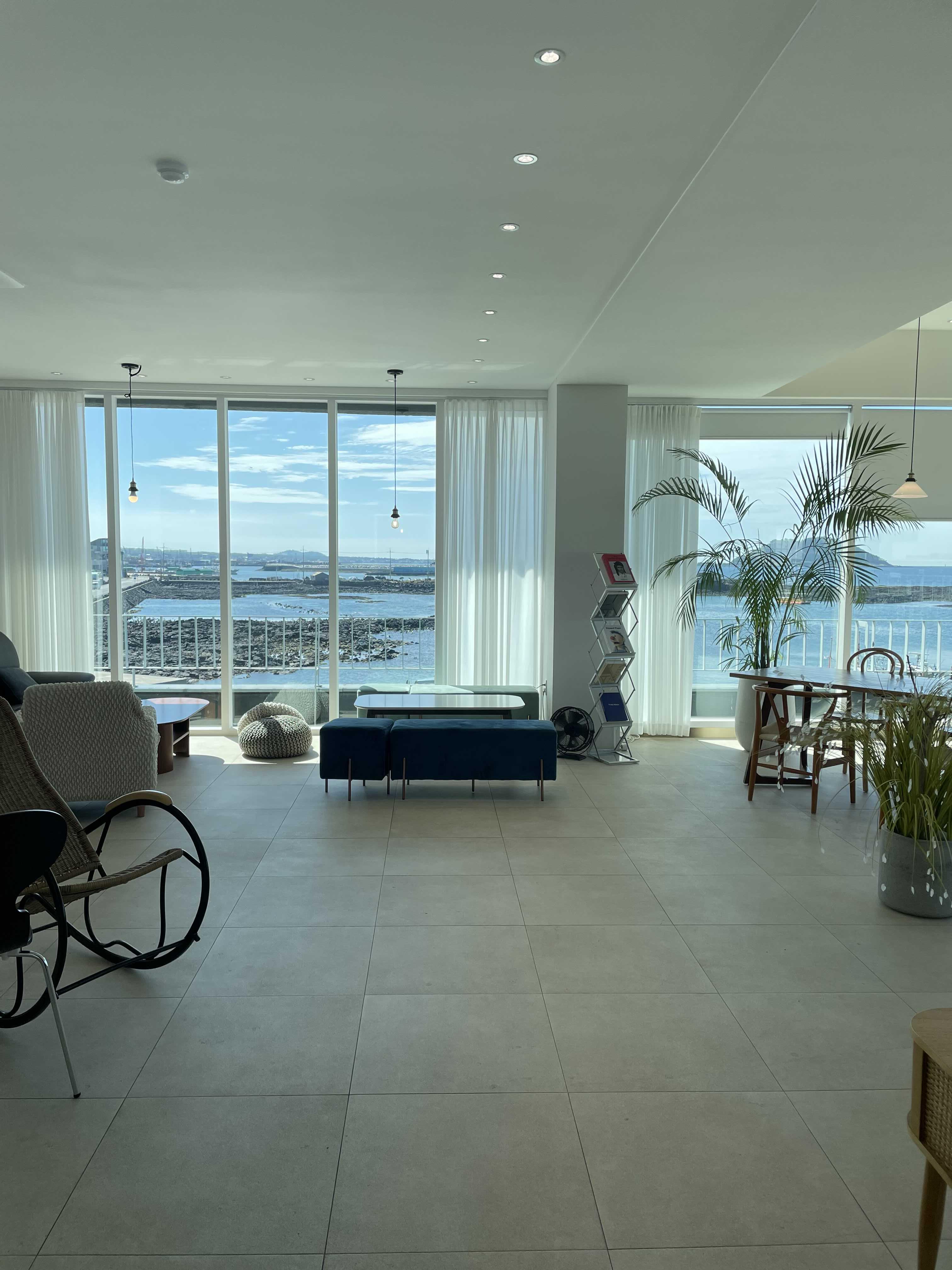 비양도 투어 후에 가려고 미리 찾아둔 펄랑을 방문했어요. 우선 가장 추천드리는 큰 이유는 뷰가 대박이고 아직 많이 알려지지 않은 숨은 뷰맛집 카페여서 손님이 없어요. 정말 한산하고 조용한 분위기를 선호하신다면 꼭 방문하시길 추천드립니다. 그리고 뚜벅이인 저에게는 더할나위 없이 안성맞춤이었어요. 비양도에서 나와서 한림항에서 도보로 약 13분 정도 걸리는 가까운 거리에 위치해있기 때문입니다.
