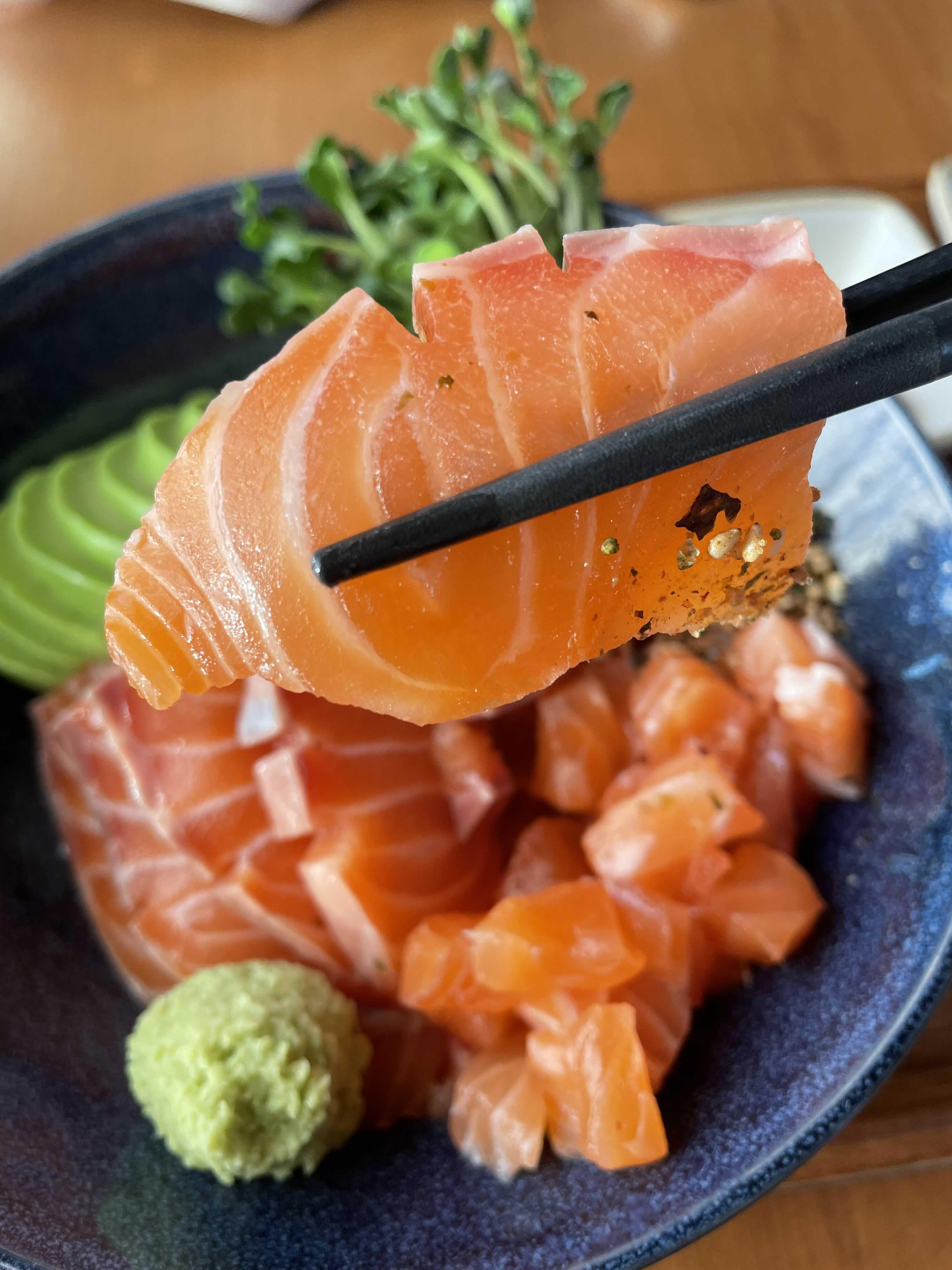 제가 시킨 연어아보카도 덮밥이 나왔어요. 1인 쉐프라서 메뉴가 나오는데 시간이 오래 걸릴수도 있다고 하니 조금 오래 걸리더라도 여유롭게 기다려주세요. 저는 첫손님이어서 빨리 나왔지만요...ㅎㅎ