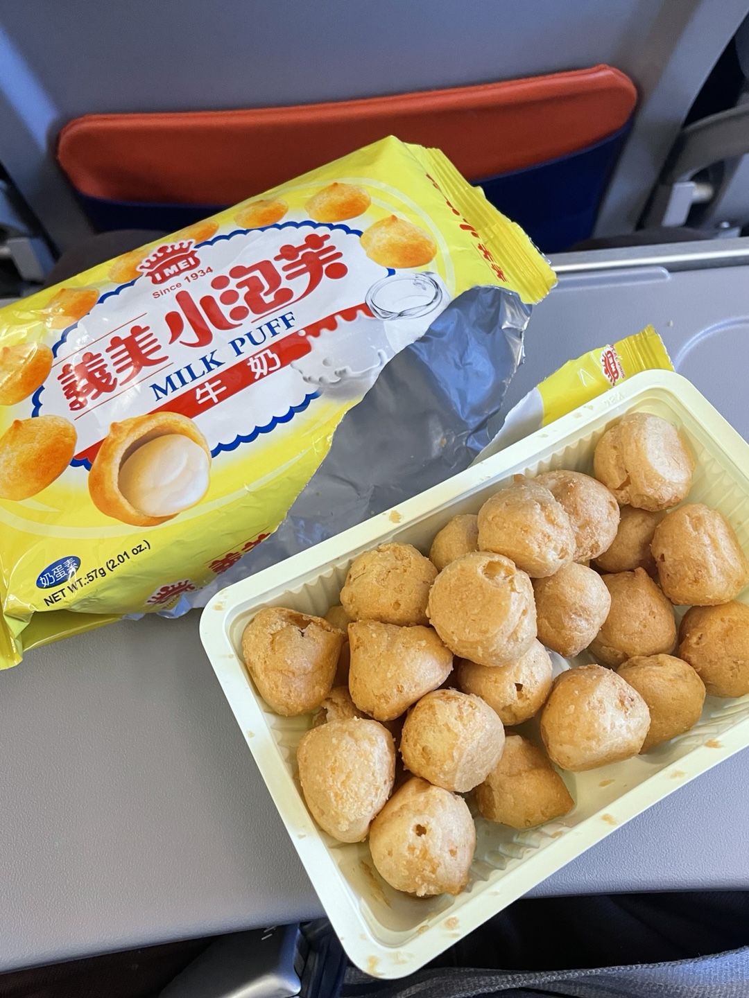 이전에 타이베이 출국 시에 탑승했던 대한항공 좌석보다는 확실히 좁은 느낌을 받긴했습니다. 사진은 제가 탑승 시에 기내에서 먹었던 과자를 찍기 위한 사진인데, 좌석 간에 이 정도 여유가 있다는 점을 참고하시라고 사진 첨부합니다.