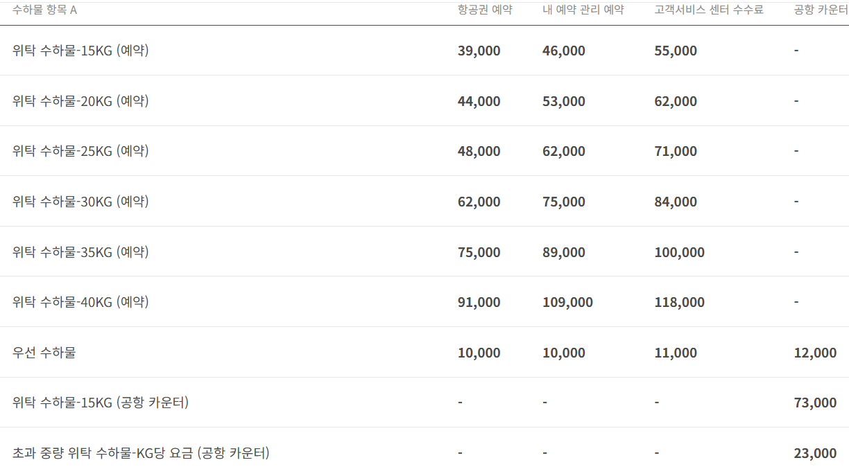 항공권을 예약 할때 위탁 수화물을 추가하면 가장 저렴하게 구매가 가능합니다. 공항 카운터에서 결제시에는 거의 두배 정도의 가격을 지불해야하니 미리 구매하시길 추천합니다.