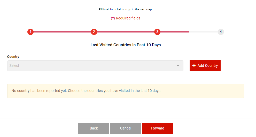 그다음, 터키 입국전 10일간 있었던 나라를 선택하여주시면 됩니다. 한국에서 바로 터키로 가는 경우, 한국만 넣고 다른나라에서 터키로 가시는거라면 해당 나라를 추가해주시면 되겠죠?