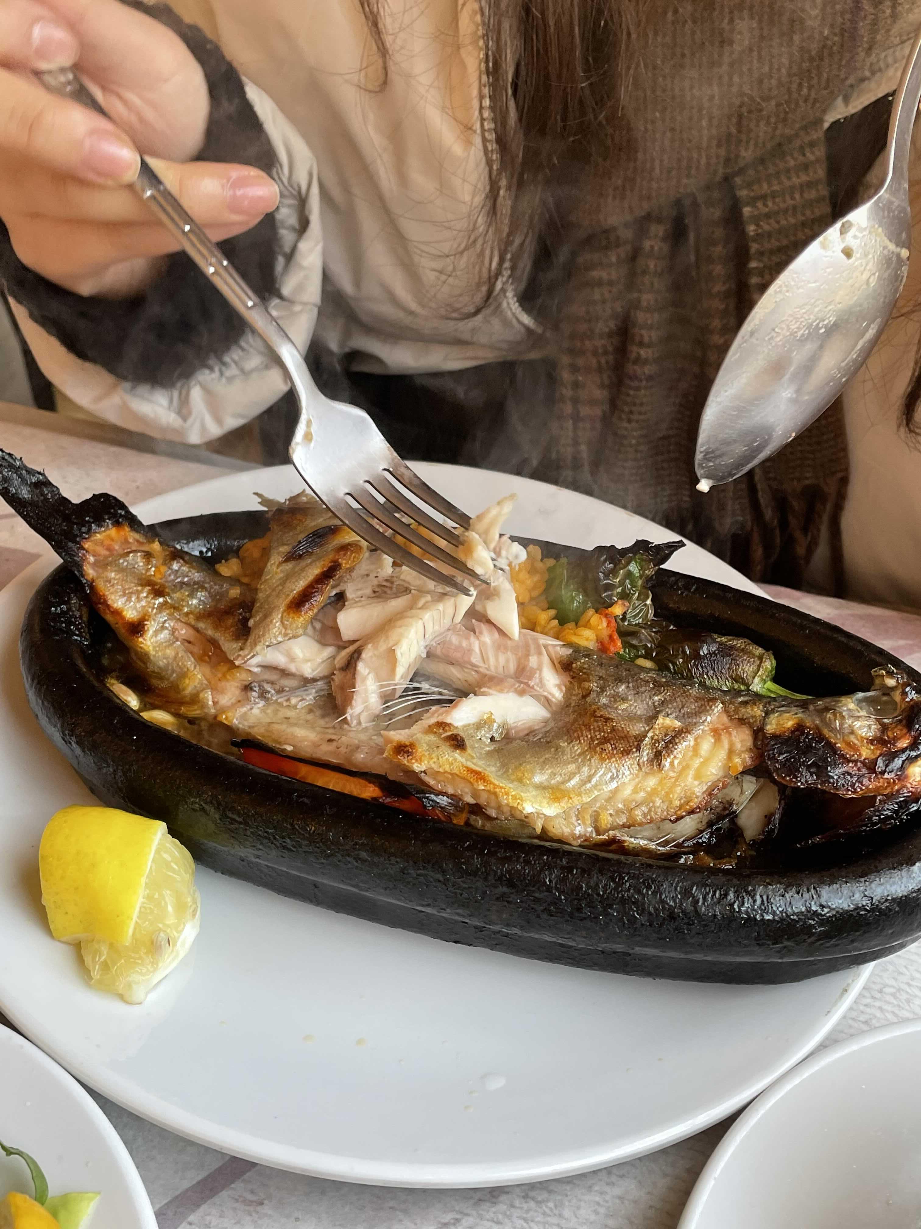 동생이 시킨 생선.. 소금간이 하나도 안되어 있어서 한참을 맛없게 먹던 동생에게 소금을 찹찹 뿌려줍니다. 양이 굉장히 적어보여서 한입 뺏어먹는 것도 미안하더라구요..