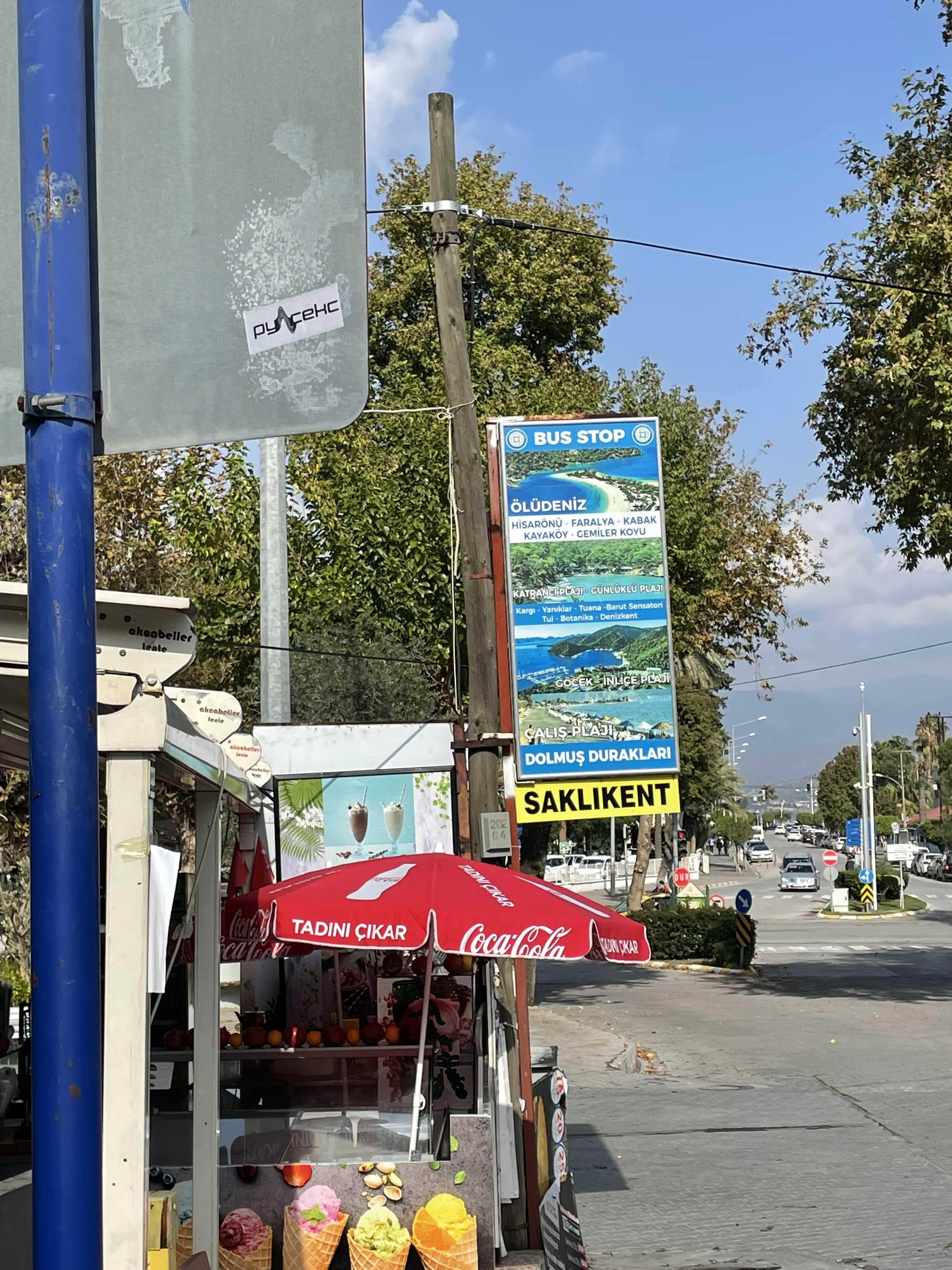 페티예에서 올루데니즈 가는 사람들의 후기가 별로없다. 다들 올루데니즈에 숙소를 잡거나, 미리 예약을 해놔서 픽업으로 가서 그런가.. 올루데니즈 가는 돌무쉬 정류장 찾는데 조금 고생했다. 점심 먹었던 곳에 다시가서 혹시 돌무쉬 타는 곳 아냐고 겨우 물어서 도착한 올루데니즈 가는 버스정류장 위치!