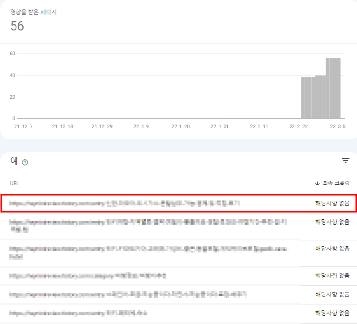 2. 제외됨에 해당된 건들은 현재 구글에서 제목 그대로 검색해도 검색이 안되는 경우이다. 즉 검색누락이란것. 제외됨을 누르고 포스팅 하나씩 클릭을 해본다.