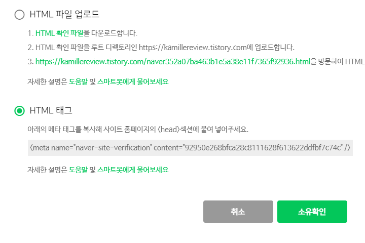 그 다음 서치어드바이스에서 소유확인을 눌러주면 완료!