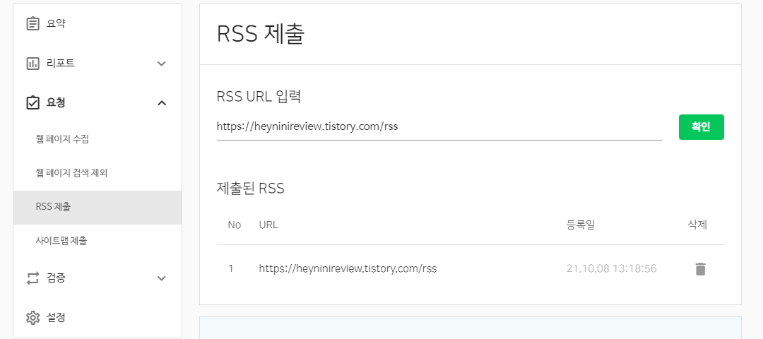 자 게시물을 하나 다들 작성하고 오셨나요? 다 하셨으면 하기와 같이 RSS제출을 해주시면 됩니다.
