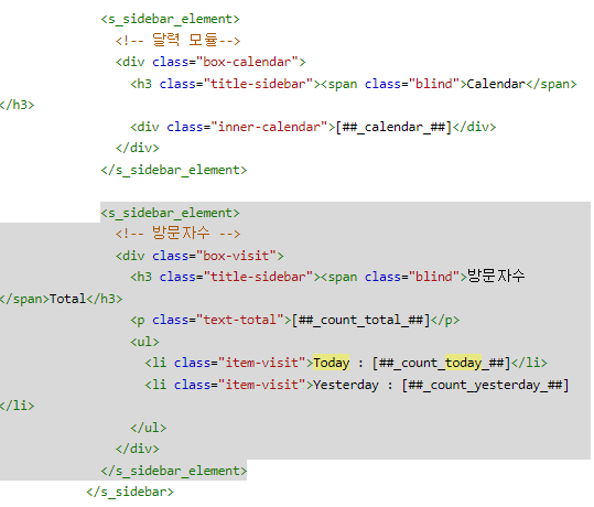 - 아래의 음영 표시된 </s_sidebar_element>부터 아래까지 지워준다.