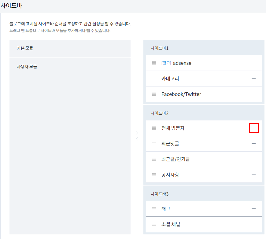 1. 블로그 설정 꾸미기에서 사이드바에 들어간다.