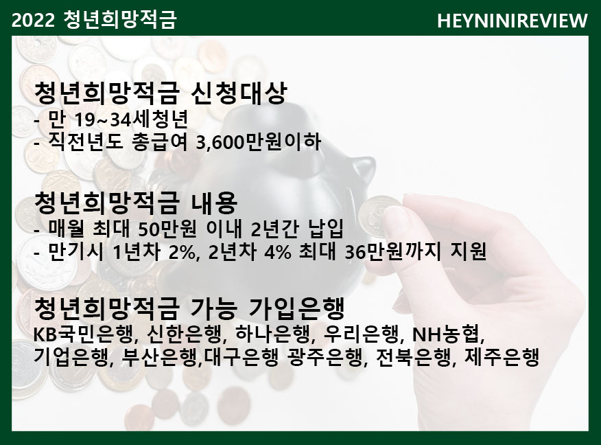 최근에 국가지원금이 다양하게 지원되고 생겨나고 있습니다. 올해 처음으로 시작되는 상품인 청년희망적금에 대해서 소개해드리도록 하겠습니다.